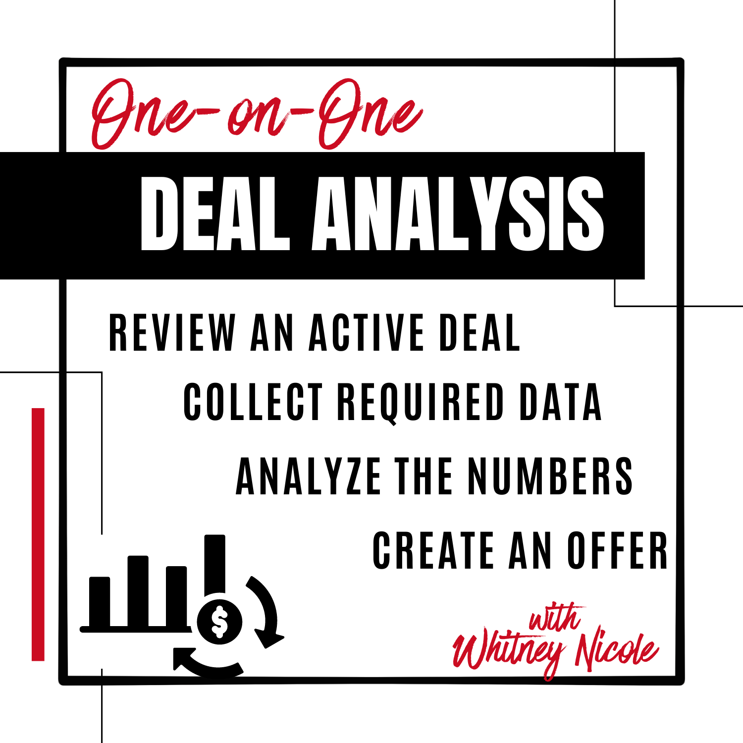 Do you have a deal that you’re not sure how to run the numbers on? Does running numbers on deals and getting it “wrong” make you nervous? I’m here to help. I offer one-on-one deal analysis calls to help walk you through deals geared towards your specific investment strategy. All information regarding your deal(s) are kept confidential.